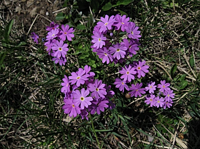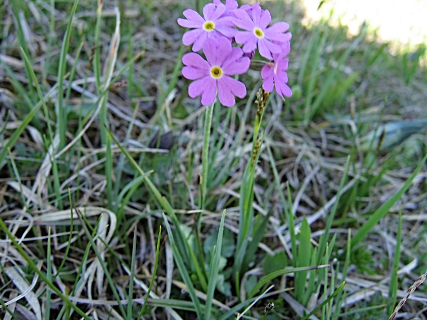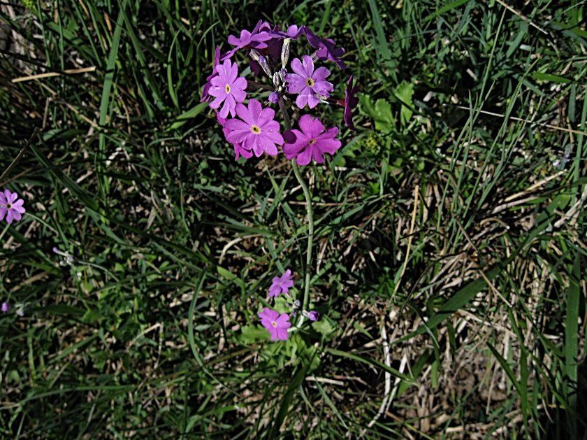 Bis in einer Höhe von 2600 Metern ist die Mehlprimel anzutreffen. Sie wird etwa 5 bis 20 cm hoch und blüht meist von Mai bis Juli in Rosa bis Rotlila. Auffällig ist der gelbe Schlundring der fünfblättrigen Blüte.
