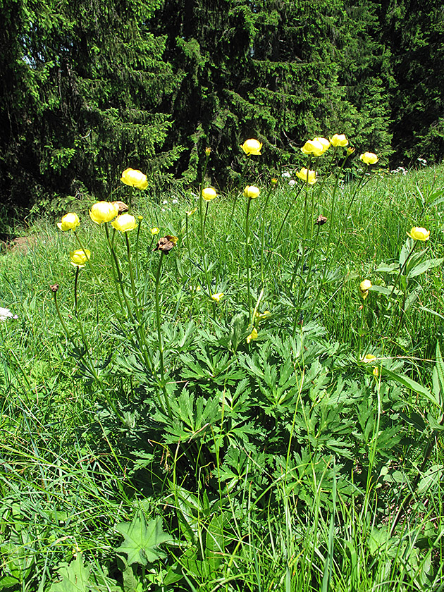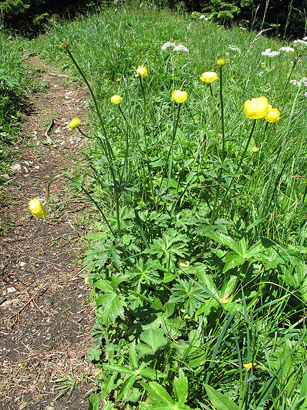 An Trollblumen, deren gelbe Blüten Almwiesen in ein wahres Farbenmeer verwandeln, erfreuen sich Wanderer mehr als das Weidevieh.