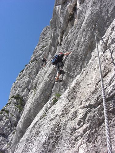 Pfeiler (C), welcher wieder echtes Klettersteigfeeling aufkommen lässt.