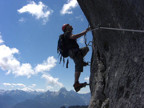 Klettersteig: Schon auf den ersten paar Metern muss man