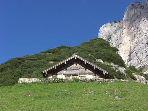 1 3/4 Stunden ist der Scheibenkaser, eine unbewirtschaftete Almhütte,