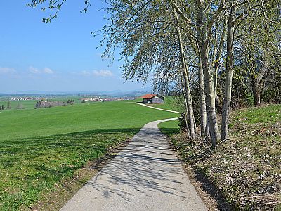 Um den Marsch entlang der Kreisstraße zu vermeiden, biegen wir kurz nach dem Wildgehege links Richtung Rieder ab, spazieren durch den Weiler Rieder und erreichen die Kreisstraße. Dieser folgen wir ein kurzes Stück nach rechts und biegen bei der nächsten Gelegenheit links in einen Weg ein, der uns in nördlicher Richtung auf ein Waldstück zuführt. Dort wendet sich der Weg nach rechts und bringt uns zurück nach Roßhaupten.