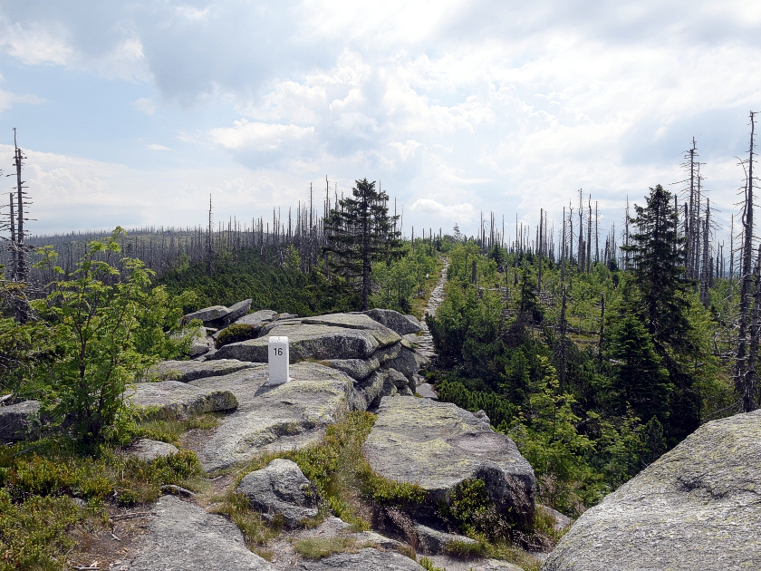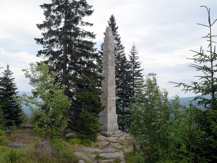 Plöckenstein (1379 m), Bayerischer Plöckenstein (1365 m) und Adalbert-Stifter-Denkmal