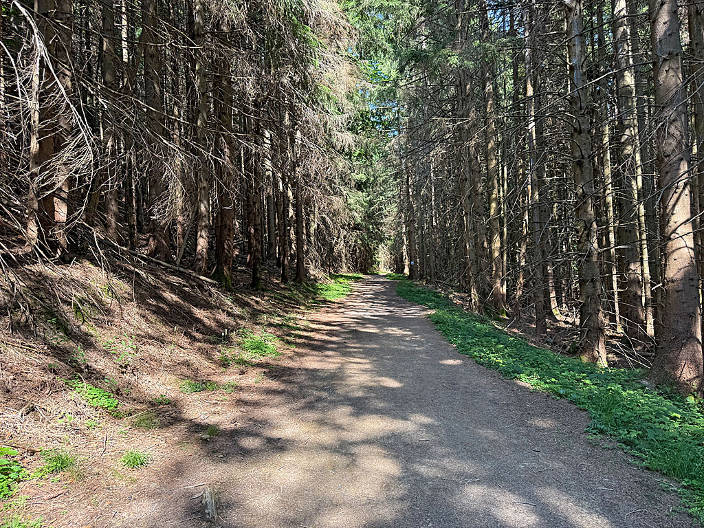 In sanfter Steigung bringt uns der Weg zum Waldrand