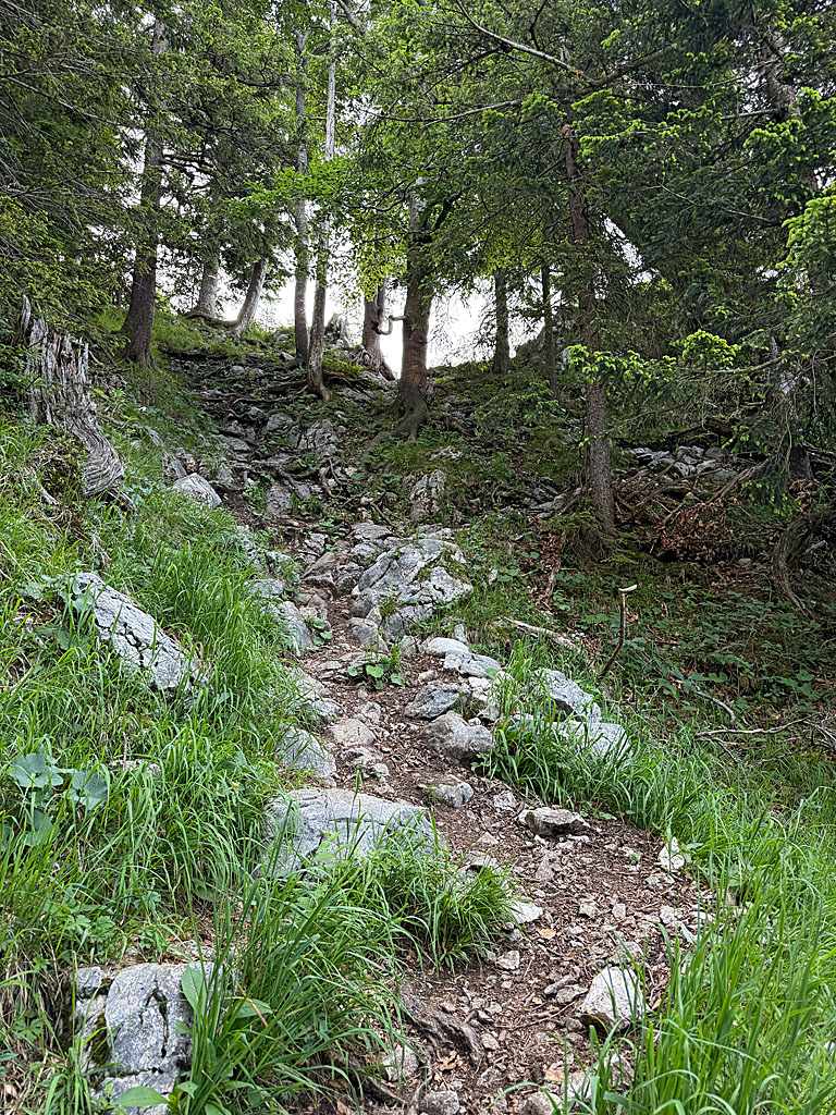 Nach der kurzen Verschnaufpause wird der Weg wieder steiler