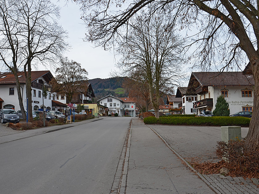 Wir gehen immer geradeaus weiter und erreichen gut 20 Minuten später die ersten Häuser von Bad Feilnbach. Unser Forstweg mündet schließlich in die Schwarzenbergstraße der wir weiter geradeaus durch den Ort folgen. Sobald wir eine Querstraße (Breitensteinstraße) erreichen, überqueren wir diese, gehen weiter geradeaus und folgen dem Fußweg am Osterbach entlang bis zur Kufsteiner Straße. Hier wenden wir uns nach rechts und spazieren entlang der Kufsteiner Straße Richtung Kirche. Nach der Kirche biegen wir nach links in die Bahnhofstraße ein und gelangen so zurück zu unserem Ausgangspunkt.
