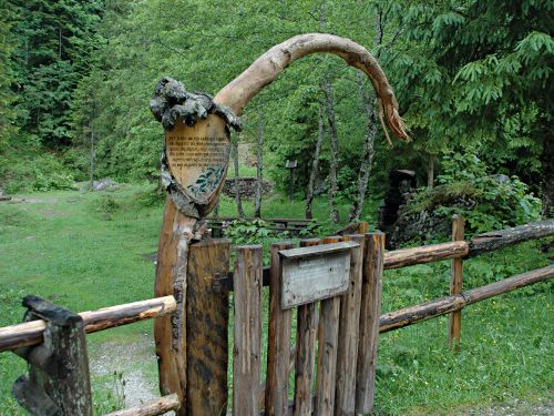 Vom Wandererparkplatz folgen wir auf einer breiten Forststraße den Wegweisern zur Passauer Hütte. Nachdem wir einen Bach und linker Hand einen Grillplatz passiert haben, wird der Weg nach einem Weidegatter zum Pfad. In wenigen Serpentinen haben wir über Almwiesen den Wald erreicht. Auf dem Naturlehrpfad erklären uns am Wegesrand regelmäßig Schilder über die heimische Fauna und Flora auf. Mit etwas Glück kann man hier auch Gämsen beobachten, die in der Schotterrinne rechts gewagte Kletterkunststücke darbieten.