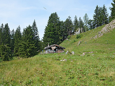 Hochgernparkplatz Unterwössen (630 m) - Rechenbergalm (1160 m) - Kleiner Rechenberg (1466 m) - Jochbergalmen (1265 m) - Hochgernparkplatz Unterwössen (630 m)
