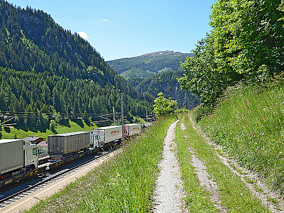 Vom Gipfel folgen wir dem markierten Waldpfad steil abwärts und treffen nach zehn Minuten auf einen Forstweg. Nun schlagen wir den Forstweg ein und wandern über diesen bergab. Nach fünf Minuten zweigt nach links der beschilderte Steig hinunter nach St. Jodok ab. Wir biegen also links ab und folgen dem Pfad hinunter zu den Bahngleisen, wo wir wieder auf unseren Aufstiegsweg treffen. Über diesen spazieren wir zurück zum Parkplatz in der Schmirnleite (45 Minuten ab dem Gipfel).