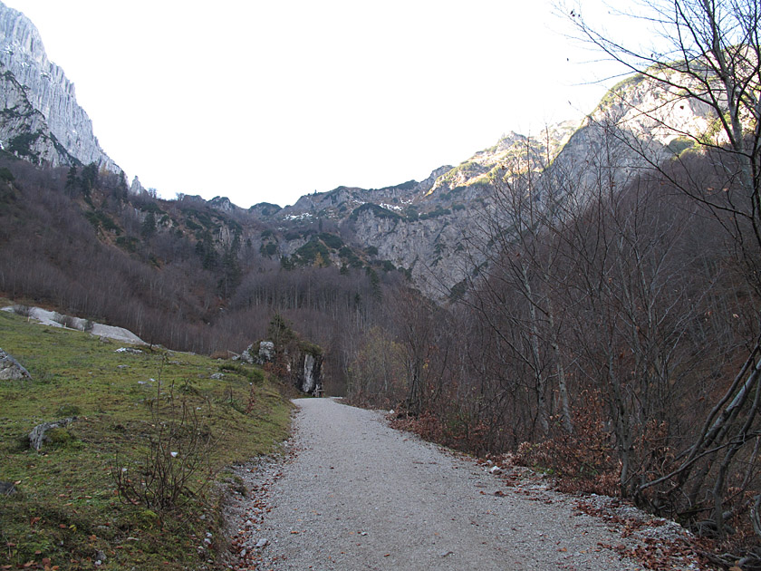Wir passieren die eindruckvollen Wände um das Griesener Tor und im Anschluss den Fuß des Totenkirchls. Nach einer kleinen Holzhütte wird der Weg langam steiler und schmäler. Letztendlich schlängelt sich dieser in Serpentinen zum Stripsenjochhaus hinauf, das wir etwa 1 ½ Stunden nach Aufbruch an der Griesner Alm erreichen. Am Stripsenjoch spazieren wir nun in südlicher Richtung zum Tavonaro-Kreuz hinauf, das sich nahe der Hütte auf einer Anhöhe befindet. Vom großen Holzkreuz wandern wir einige Meter bergab und wählen nun zuerst den Normalweg zum Stripsenkopf.