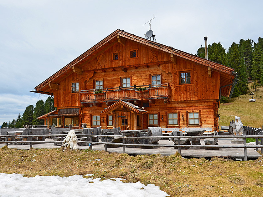 Im Winter lockt die 6 Kilometer lange und präparierte Rodelbahn der Alm. Schlitten für die rasante Rodelgaudi können direkt an der Hütte ausgeliehen werden. Ausgangspunkt ist auch hier der Parkplatz an der Waldschenke in Ranui. Nach dem 2-stündigen Anstieg geht es über den beschilderten Weg 34 zurück ins Villnößtal. Auch der eindrucksvolle Adolf-Munkel-Weg wird im Winter je nach Schneelage oder vorhandenen Spuren als Schneeschuhtour oder als Winterwanderung begangen.