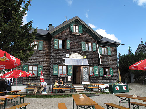 und der Dachstein lassen sich von der Hüttenterrasse ausgiebig studieren.