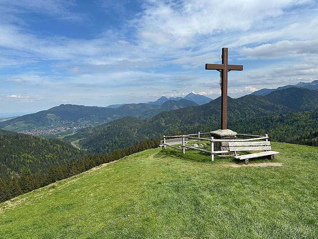 Gipfelziele rund um die Alm sind die Gindelalmschneid und die Baumgartenschneid. Die Gindelalmschneid (1335 m) erreicht man von der Almhütte in 40 Minuten. Der Übergang ist leicht und erfolgt auf komfortablen Wanderwegen. Zum Gipfel der Baumgartenschneid (1448 m) benötigt man eine Aufstiegszeit von etwa 1 ¼ Stunden. Hier ist zudem Trittsicherheit erforderlich, da auf der Westseite des Kreuzbergköpfls ein abschüssiger Waldhang gequert wird. Beide Gipfel lassen sich auch ideal zu einer Rundtour kombinieren. Ab Tegernsee sollte man für diese großzügige Runde eine Gehzeit von 6 Stunden einplanen.