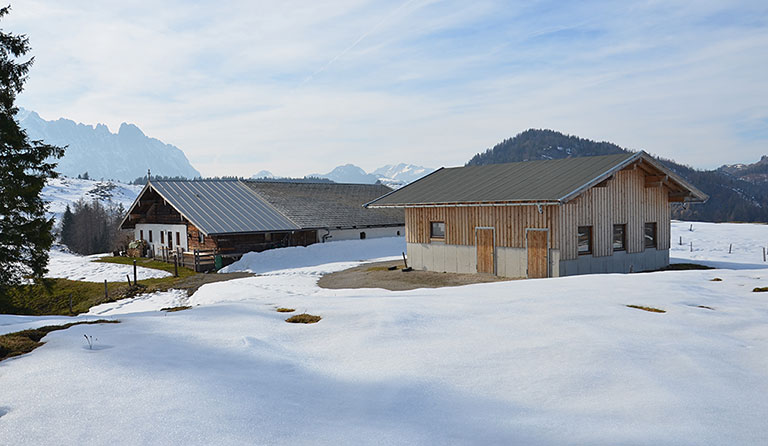 Die Prostalm liegt im östlichen Kaisergebirge am Fuße des Prostkogels