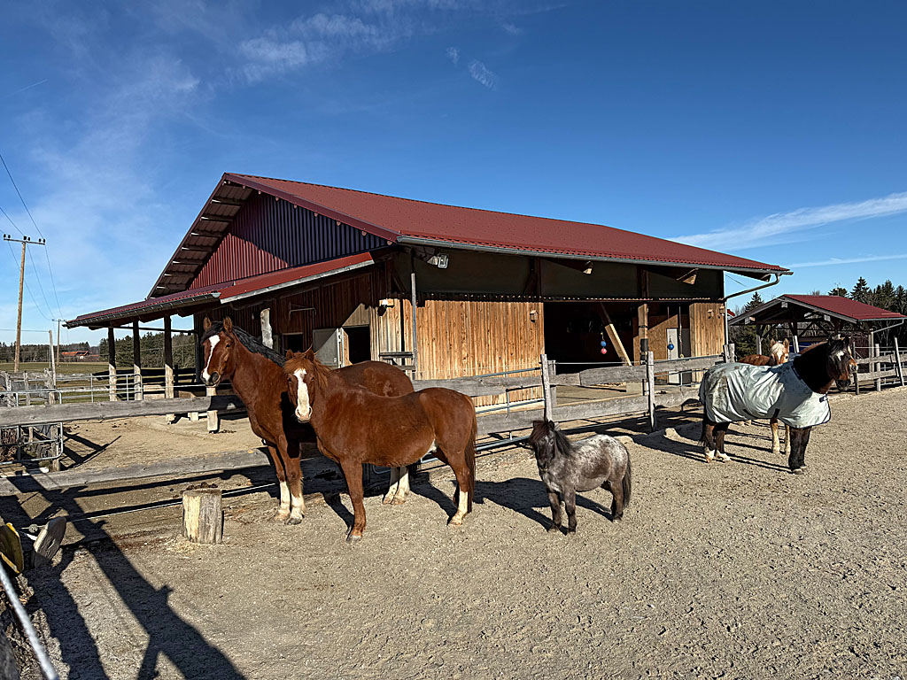 Auf der uns bekannten Route kehren wir über Spöck und Reitham nach Bernau zurück. In der Engelländerstraße verlassen wir unseren Hinweg, gehen weiter geradeaus und biegen vor einem Gatter linkshaltend in den Hitzelsberger Waldweg ein. Nach einem kurzen Abstieg und einem Rechtsbogen bringt uns der kleine Waldweg zur Waldkapelle am Hitzelsberg. Von der hölzernen Kapelle spazieren wir weiter nach Südosten. Sobald sich der Wald lichtet, können wir noch einen Blick auf die Westseite des Chiemsees werfen. An einem Gehöft lassen wir die Einfahrt rechts liegen, halten uns leicht links und gehen dann rechts um einen Wohnblock herum. Schließlich treffen wir wieder auf die Hitzelsbergstraße. Nun wenden wir uns nach links und spazieren zum Parkplatz am Minigolfplatz zurück.