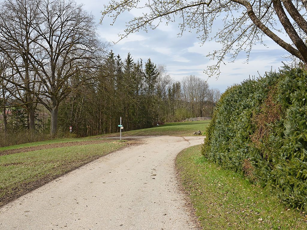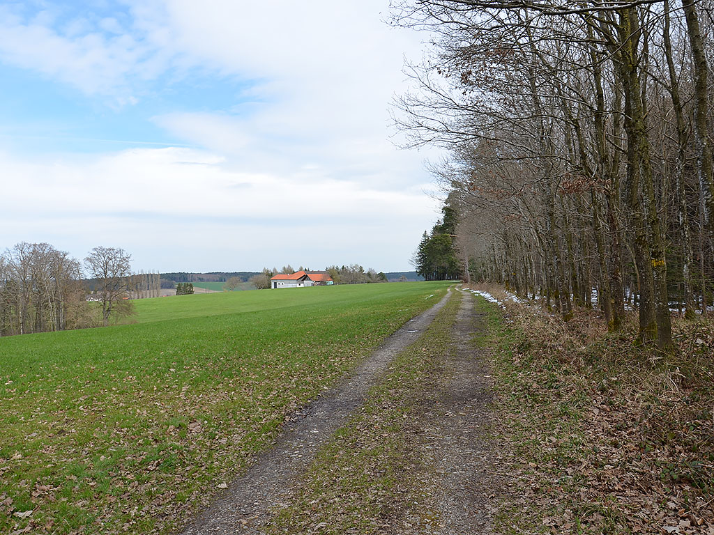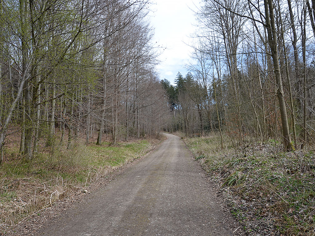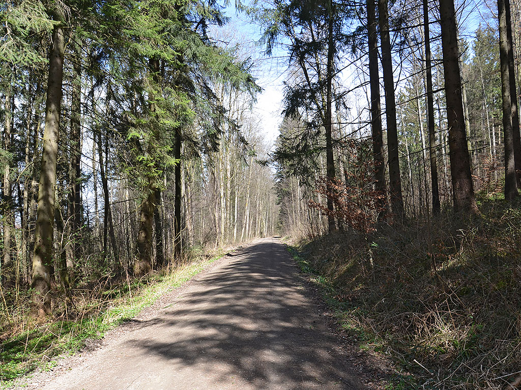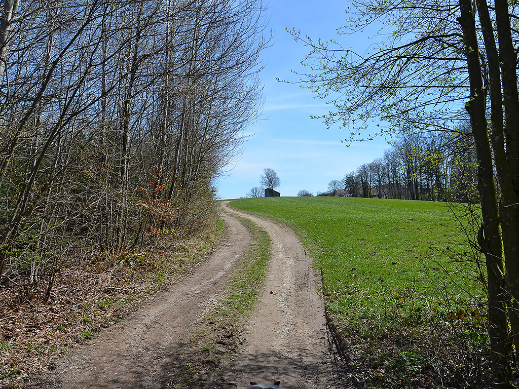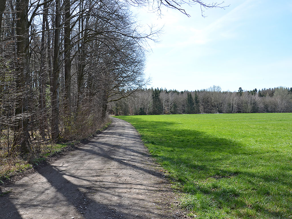 Vom Ortsrand von Buch am Buchrain folgen wir einem Forstweg südwärts...