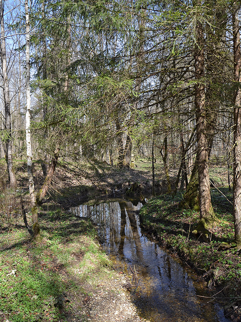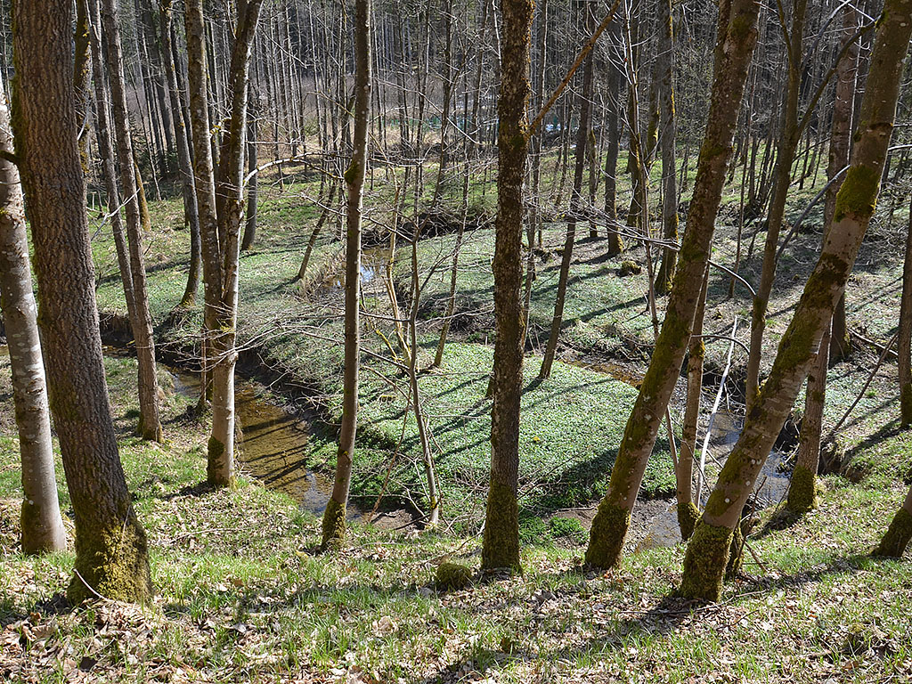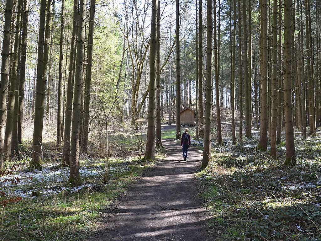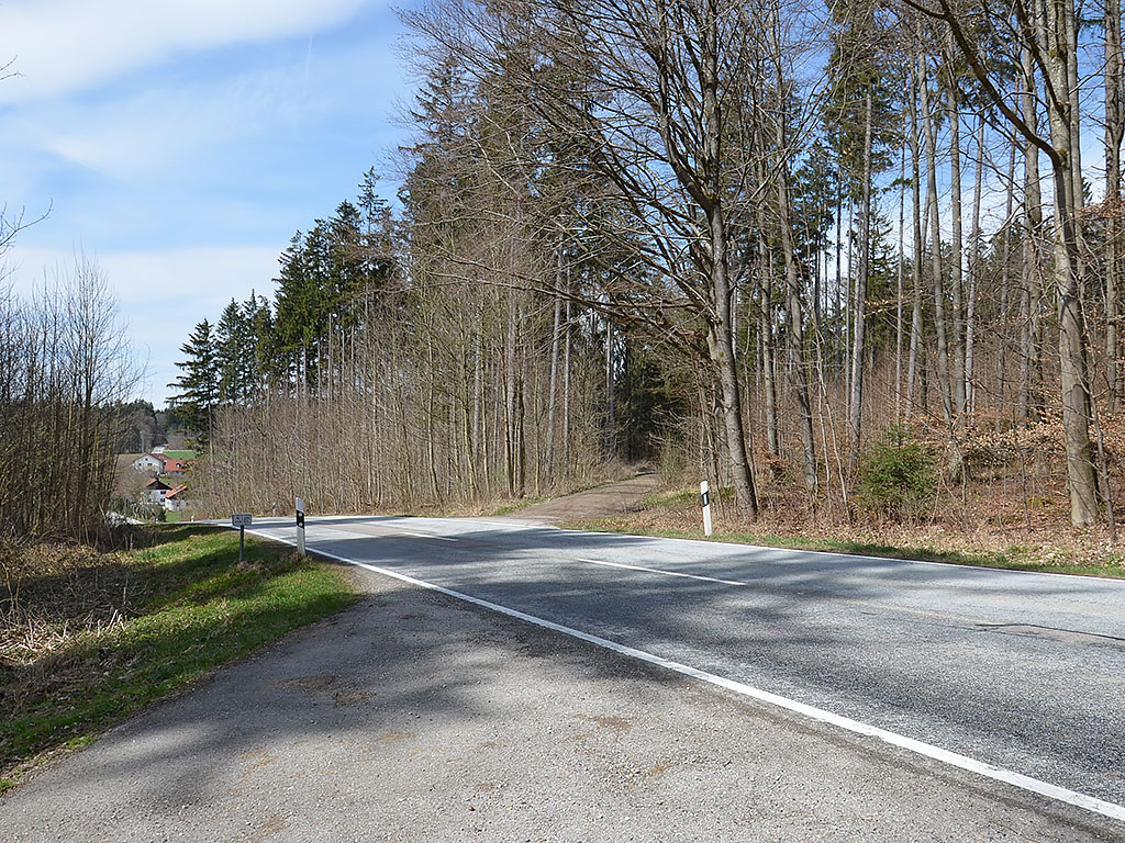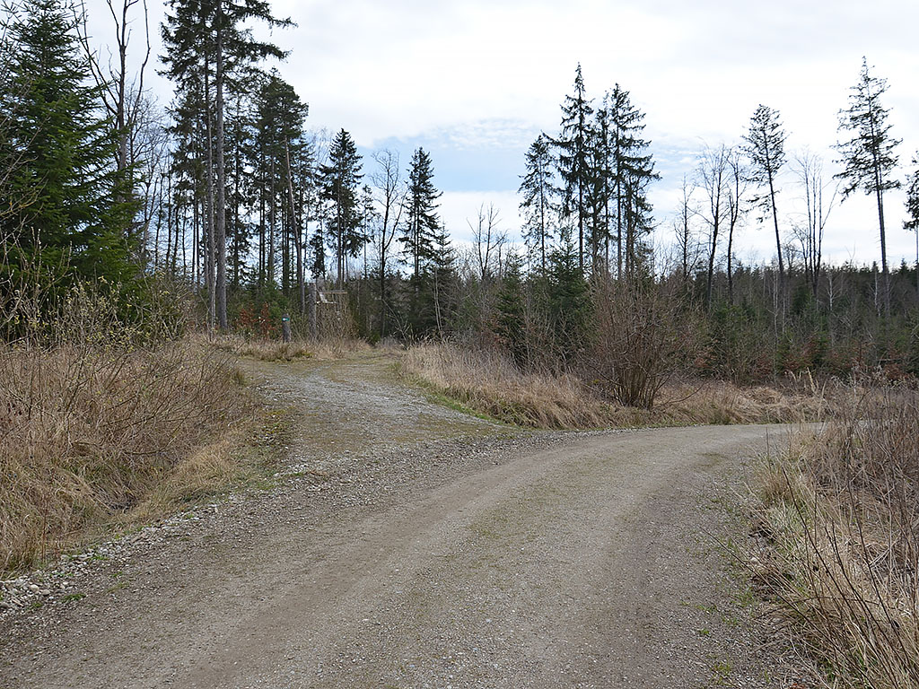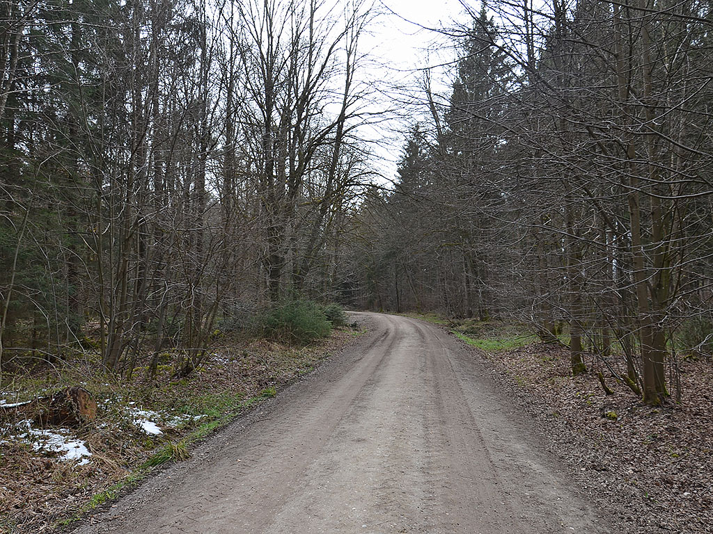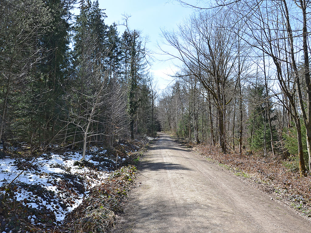 Vom Ortsrand von Buch am Buchrain folgen wir einem Forstweg südwärts...
