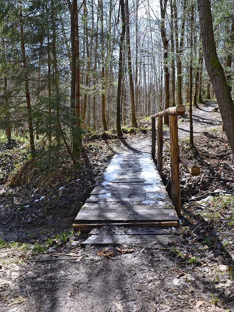 Ein Pfad bringt uns hinunter zu einer Brücke...