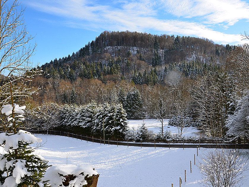 Knapp 10 Kilometer lange Rundwanderung, die zum Großteil über Feld- und Forstwege führt. Die Wanderung ist auch im Winter bei moderater Schneelage gut machbar, allerdings nur mit gutem Schuhwerk.