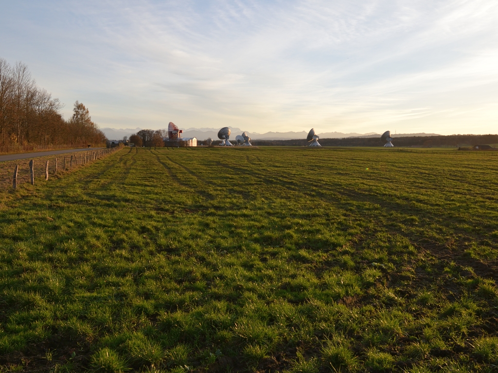 Auf einer Brücke überqueren wir die Gleise. Nach Süden können wir nun vor der Alpenkette die futuristisch anmutenden Satellitenschüsseln der Erdfunkstelle Raisting betrachten. Auf der alten Pähler Straße wandern wir anschließend weiter entlang der Schienen zum Bahnhof. Dort halten wir uns links nach Westen. Etwa 100 m folgen wir weiter der Pähler Straße, bevor wir rechts in den Pfarrer-Tremmel-Weg abbiegen. An der nächsten Möglichkeit biegen wir links ab und spazieren über dem Kirchweg weiter zur 1696 fertiggestellten Kirche St. Remigius. Auf der Floßmannstraße verlassen wir den Ortskern von Raisting und überqueren die Rott. Ein Stück nach der Brücke biegen wir links ab und setzen nach Südwesten unsere Reise auf dem Stillernweg fort.