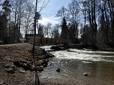 Das Emmeringer Hölzl wäre allein schon ein Ausflug wert. Über zahlreiche Brücken kann man die verschiedenen Seitenarme der Amper überqueren. Die landschaftlich äußerst reizvolle Gegend lädt ein, die Umgebung näher zu erkunden. Heute streifen wir das Landschaftsschutzgebiet nur kurz und setzen unseren Weg nach Fürstenfeldbruck fort. Am Ende des Emmeringer Hölzls treffen wir auf die Weiherstraße, der wir eine Weile folgen. Links von uns befindet sich ein kleiner Weiher, auf dem wir zahlreiche Wasservögel beim Baden beobachten können. Noch bevor wir auf die Kirchenstraße treffen, halten wir uns links und folgen dem Wegweiser zur S-Bahn. Über eine Brücke erreichen wir die Münchner Straße. Dort halten wir uns rechts und marschieren nach Westen bis zur Stockmeierstraße. Dieser folgen wir links bis zum S-Bahnhof Fürstenfeldbruck.