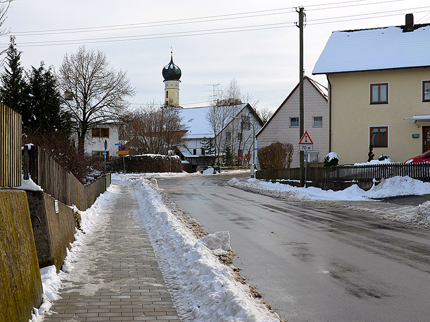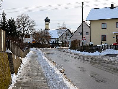 In Ottenhofen wechseln wir auf die in Fahrtrichtung Erding blickend rechte Seite des Bahnhofs. Von hier gehen wir über eine Treppe hinunter zur Erdinger Straße und folgen dieser in südlicher Richtung. In wenigen Minuten erreichen wir die Kirche St. Katharina. Nach der Kirche biegen wir links in die Schwillacher Straße ein (gelber Wegweiser "Unterschwillach"). Nun folgen wir immer der Straße, die uns in einem Linksbogen durch Ottenhofen führt. Die Abzweigung nach rechts (Herdweger Straße) ignorieren wird. Nach der Kreuzung wendet sich die Straße in einem Rechtsbogen Richtung Westen und führt uns über die Sempt aus Ottenhofen hinaus.