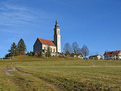 Eine Rundwanderung durch die hügelige Landschaft zwischen Glonn und Grafing, die sich besonders für sonnenhungrige Spaziergänger eignet. Von Grafing Bahnhof führt uns die gut 10 Kilometer lange Runde über Taglaching, Pullenhofen und Bruck nach Alxing. Bis zur kleinen Ortschaft Taglaching wandern wir entlang einer wenig befahrenen Straße, ab Tachlaching lassen wir den Autoverkehr hinter uns. Über Feldwege und kleine Teerstraßen spazieren wir nach Bruck und erreichen in einem Gegenanstieg Alxing. Von einer der Rastbänke an der aussichtsreich gelegenenen und sehenswerten Kirche St. Michael genießen wir den Blick zu den Bayerischen Voralpen, bevor wir durch ein schattiges Waldstück nach Schammach und schließlich wieder zurück nach Grafing Bahnhof wandern.
