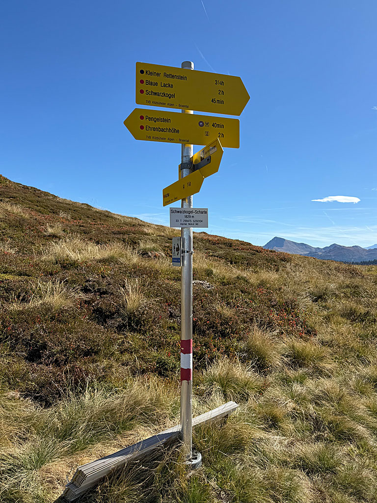 In den Kitzbüheler Alpen bildet die Schwarzkogelscharte zwischen dem Pengelstein (1938 m) in Norden und dem Schwarzkogel (2030 m) im Süden den natürlichen Einschnitt. Vom Sattel sind es noch 40 Minuten Gehzeit zum Pengelstein und 45 Minuten bis zum Gipfelkreuz Schwarzkogel.